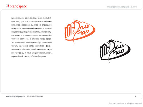 Монохромное изображение логотипа (лого) применяется там , где его полноцветное изображение либо невозможно, либо не оправдано из художественных соображений, исходя из существующей цветовой гаммы. В этом случае в логотипе (лого) используется только один цвет без тоновых различий. В случае, когда средства не позволяют цветное изображение логотипа (лого) воспроизвести на черно-белом принтере, факсимильном сообщении, изображении на экране телефона, и т.п., следует использовать черно-белый (не серо-белый) вариант.